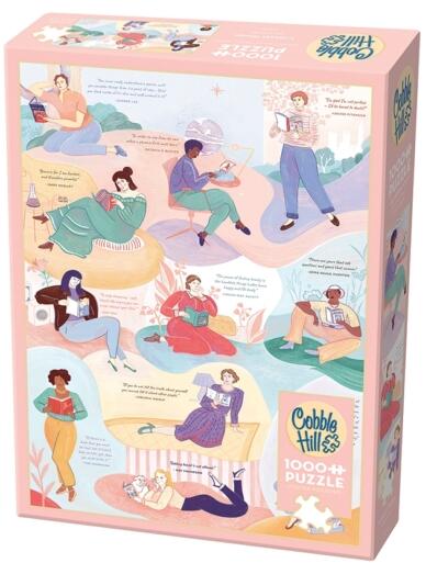 A Cobble Hill 1000 db-os puzzle - Literary Women  című képen könyvet olvasó nőket láthatunk egy fotókollázson.