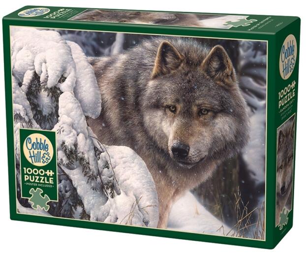 A Cobble Hill 1000 db-os puzzle - Master of the North  című képen egy farkas látható a téli tájban.