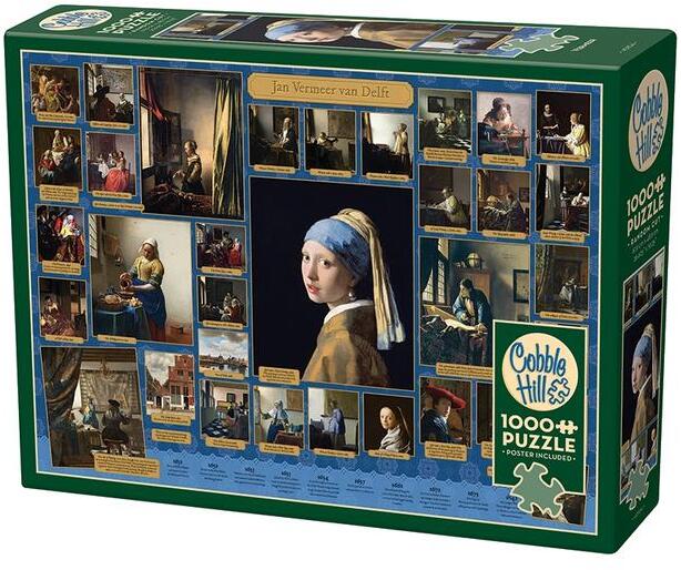 A kanadai Cobble Hill  a nosztalgikus, színes, és mindemellett kiváló minőségű kirakókkal kívánja örvendetessé tenni a játék élményt kicsiknek és nagyoknak egyaránt.  A Cobble Hill 1000 db-os puzzle - Vermeer  puzzle egy művészeti témájú kirakójáték, mely a híres holland festő, Johannes Vermeer ikonikus festményeit ábrázolja. A puzzle kirakása közben élvezheted Vermeer mesterséges művészetét és a részletek felfedezését. Figyelheted a festmény színeit, a textúrákat és a részletgazdag kompozíciót, és fokozatosan összeállíthatod a teljes képet. Ha elakadsz, ne aggódj, próbáld meg csoportosítani a darabokat szín vagy formavilág szerint, vagy keresd meg a konkrét részleteket, amelyeket könnyebben összeilleszthetsz.