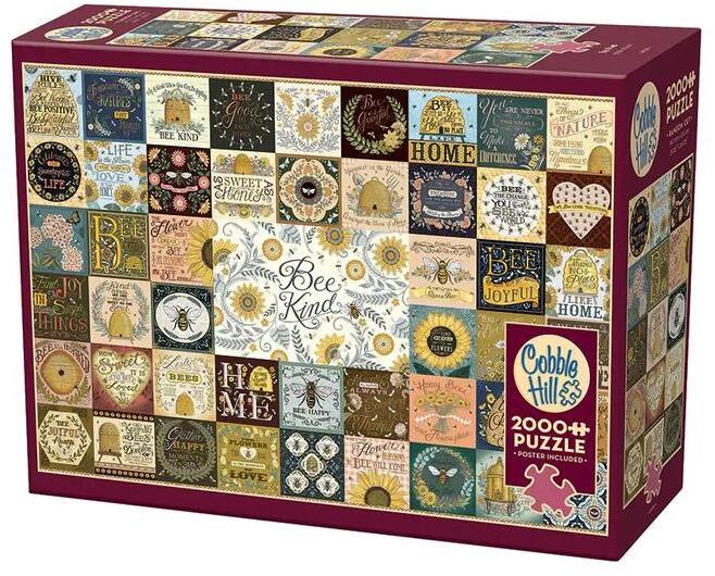 A kanadai Cobble Hill  a nosztalgikus, színes, és mindemellett kiváló minőségű kirakókkal kívánja örvendetessé tenni a játék élményt kicsiknek és nagyoknak egyaránt.  A Cobble Hill 2000 db-os puzzle - Bee Kind (49019)  egy impozáns és részletgazdag kirakó, amely a méhek világát és a természet szépségét mutatja be. Ez a puzzle különösen lenyűgöző választás mindazok számára, akik kedvelik a természetet és a kihívást jelentő, nagyobb darabszámú kirakókat.