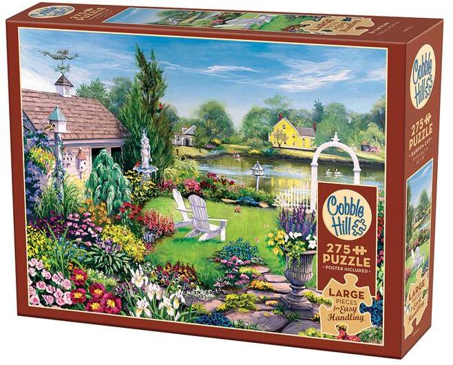 A Cobble Hill 275 db-os puzzle - By the Pond Pihentető nap lesz a tóparton. Egy gyönyörű, merész színű kertben két Adirondack szék festői környezete várja vendégeit egy napsütéses délutánra. A Cobble Hill Easy Handling 275 darabos, véletlenszerűen kivágott kirakói tökéletes kezdőrejtvények minden újonc számára a szúrófűrészek terén. A nagy darabok rengeteg részletet mutatnak be, így könnyebben azonosítható a helye a kirakós játékban. Az átlagos darabméret két hüvelyk. Időseink szívesen összeállítják ezeket a rejtvényeket önállóan és unokáikkal, ez nagyszerű tevékenység minden korosztály számára! Ez is egy könnyű kategória egy otthoni randevús estéhez!