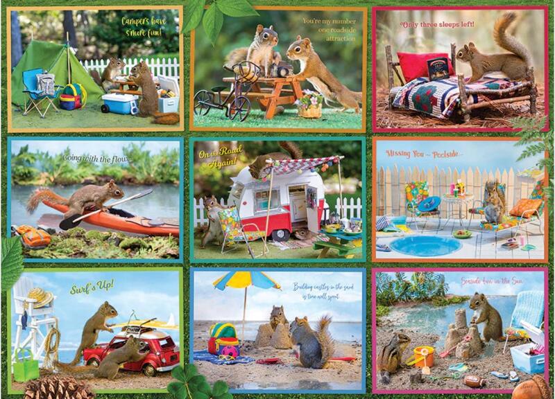 A Cobble Hill 1000 db-os puzzle - Squirrels on Vacation  című képen aranyos mókusok láthatóak.
