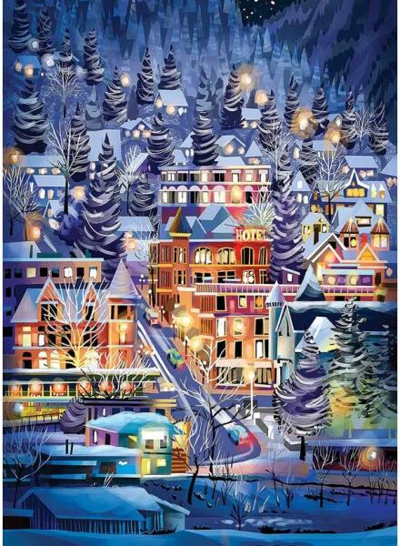 A kanadai Cobble Hil l  a nosztalgikus, színes, és mindemellett kiváló minőségű kirakókkal kívánja örvendetessé tenni a játék élményt kicsiknek és nagyoknak egyaránt.  A Cobble Hill 500 db-os puzzle - Ski Town (45098) kirakó képén egy város látható, mely egy igazi síparadicsom.