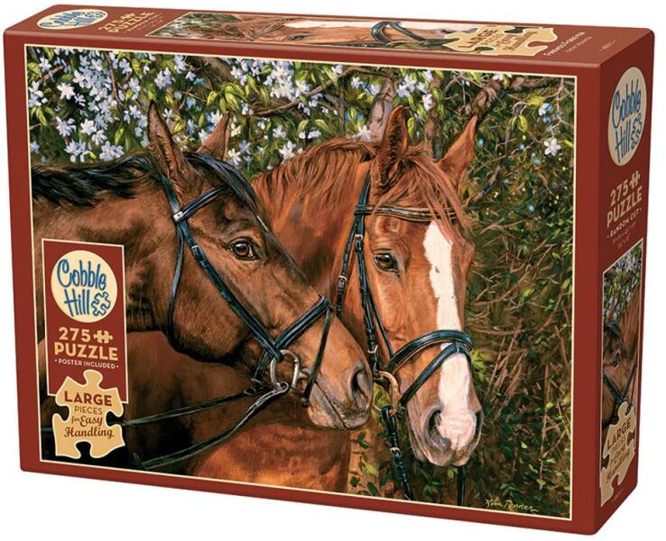 A Cobble Hill 275 db-os puzzle - Friends Forever A „két fej jobb, mint egy eset igaz a Friends Forever Easy Handling 275 darabos puzzle-ben. A kedves lovak szurkálják egymást, miközben elsétálnak kedvenc virágzó sövényük mellett. A Cobble Hill Easy Handling 275 darabos, véletlenszerűen kivágott kirakói tökéletes kezdőrejtvények minden újonc számára a szúrófűrészek terén. A nagy darabok rengeteg részletet mutatnak be, így könnyebben azonosítható a helye a kirakós játékban. Az átlagos darabméret két hüvelyk. Időseink szívesen összeállítják ezeket a rejtvényeket önállóan és unokáikkal, ez nagyszerű tevékenység minden korosztály számára! Ez is egy könnyű kategória egy otthoni randevús estéhez!
