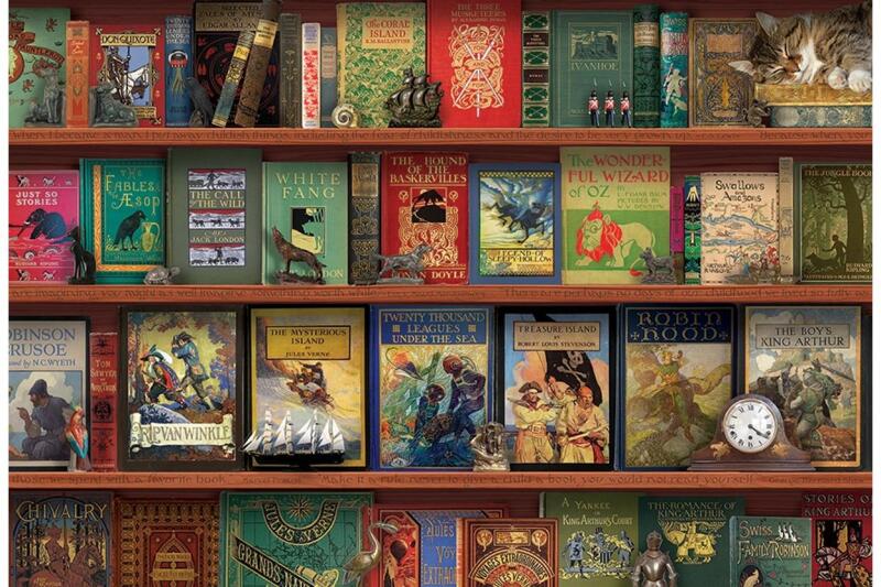 A Cobble Hill 2000 db-os puzzle - Adventure Storytime  című képen olyan könyveket láthatunk, amelyek izgalmas felfedezőutakra viszik el gondolatainkat!