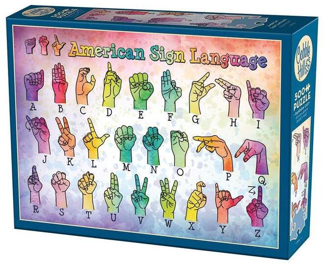Tanulnál valami újat? A Cobble Hill 500 db-os puzzle - American Sign Language kirakóval megtanulhatod az amerikai jelnyelv ábécét. Ez a mutatós, színes kép remek dísze lehet a szobának, váróteremnek vagy osztályteremnek. A kirakó nagy méretű darabjainak köszönhetően ideális kicsiknek és nagyoknak, illetve azoknak, akik ritkán kirakóznak.