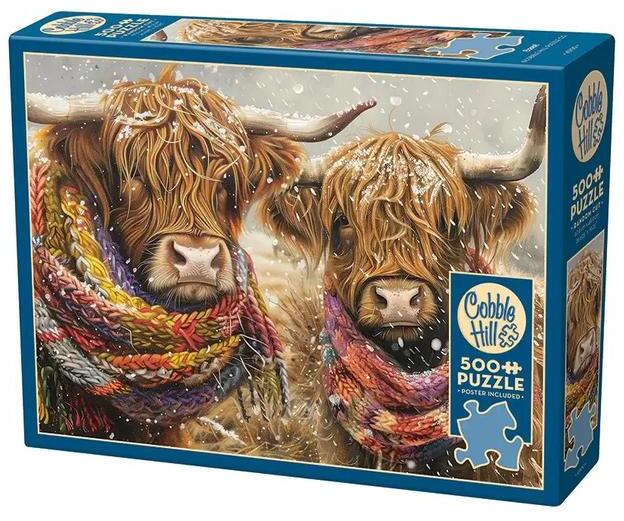 A kanadai Cobble Hil l  a nosztalgikus, színes, és mindemellett kiváló minőségű kirakókkal kívánja örvendetessé tenni a játék élményt kicsiknek és nagyoknak egyaránt.  A Cobble Hill 500 db-os puzzle - Brrr (45100) kirakó képén két aranyos boci látható.