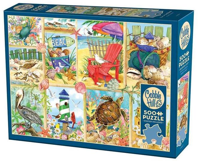 Gyere és tölts egy csodás napot a tengerparton! Építs homokvárat, gyűjts kagylókat, csobbanj egyet és csak lazulj! A Cobble Hill 500 db-os puzzle - Day at the Beach kirakó képén 9 színes, hangulatos tengerparti jelenetet láthatunk. A kirakó nagy méretű darabjainak köszönhetően ideális kicsiknek és nagyoknak, illetve azoknak, akik ritkán kirakóznak.
