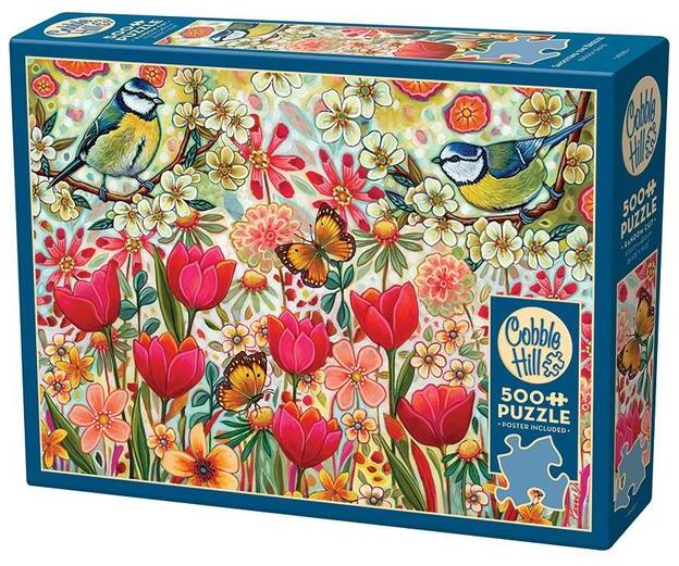 A kanadai Cobble Hil l  a nosztalgikus, színes, és mindemellett kiváló minőségű kirakókkal kívánja örvendetessé tenni a játék élményt kicsiknek és nagyoknak egyaránt.  A Cobble Hill 500 db-os puzzle - Shooting the Breeze (45001) kirakó egy nagyon vidám és színes mezőt ábrázol, madarakkal és pillangókkal, akik boldogan szálldogálnak virágról-virágra. Rögtön mosolyogni támad kedved az élénk rózsaszín, piros és sárga  szín árnyalataitól. Ha létezne egy "vidámság" nevű színesceruza, biztosan ezt a képet rajzolná meg!