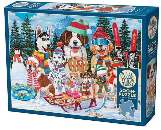 A Cobble Hill 500 db-os puzzle - Snow Day (45081)  Ez a 500 darabos puzzle a "Snow Day" című képet ábrázolja, amely egy idilli téli napot örökít meg. A képen hóval borított táj, havas házak és vidám gyerekek láthatók, akik élvezik a havazást. A puzzle darabjai részletesen kidolgozottak, és a téli hangulatot ábrázoló színes elemek abban, hogy a kész kép még inkább megteremtse a téli mesevilágot. A "Snow Day" puzzle tökéletes választás téli, és szórakoztató kihívást nyújt