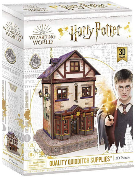 A Harry Potter: Kviddics a javából - sportszaküzlet és bájital bolt 3D puzzle 71 darab, könnyen összeépíthető kirakós elemből áll, összeállításához nincs szükség ollóra és ragasztóra. Az építés kitűnő szórakozást nyújt, az elkészült alkotás pedig ig...