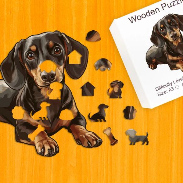 Cuki tacskó fa puzzle L Prémium fa doboz