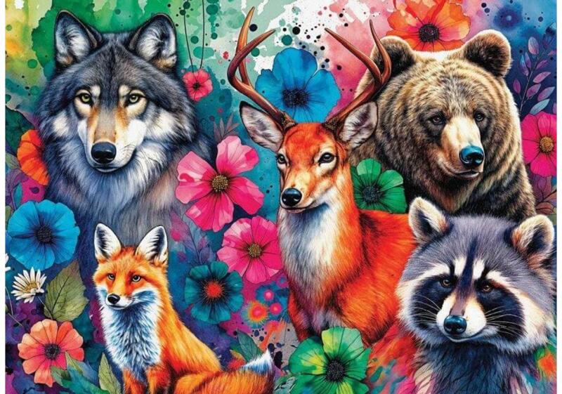A vadon alakjai jelennek meg egy művészi kompozícióban. A Delfy DE-25007 - Echoes of wilderness - 1000 db-os puzzle  a természet ősi erejét és szépségét idézi.