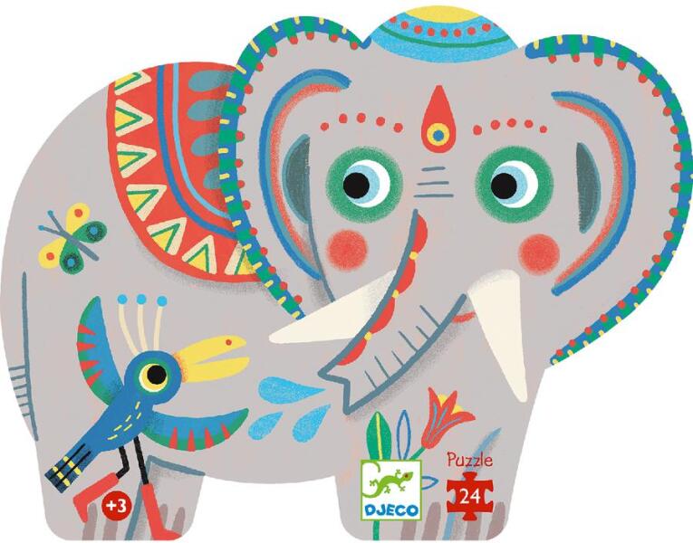 DJECO Formadobozos puzzle - Elefánt és barátai, 24 db-os - Haathee, Asian elephant (DJ07208) - molkakids