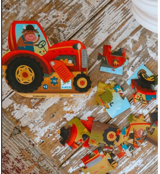 DJECO Formadobozos puzzle - Traktor, 16 db-os - The tractor (DJ07275)