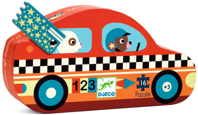 DJECO Formadobozos puzzle - Versenyautó, 16 db-os - The racing car (DJ07273)
