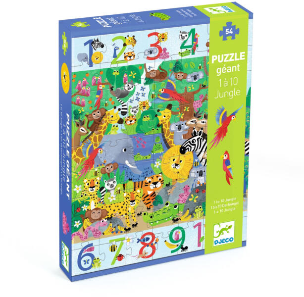 DJECO Megfigyeltető puzzle - Dzsungelben 1-10-ig, 54 db-os - 1 to 10 Jungle (DJ07148) - babaagynemubolt