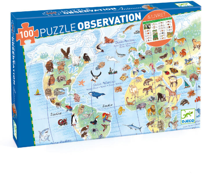 DJECO Megfigyeltető puzzle - Föld állatai, 100 db-os - Animals of the earth (DJEDJ07420)