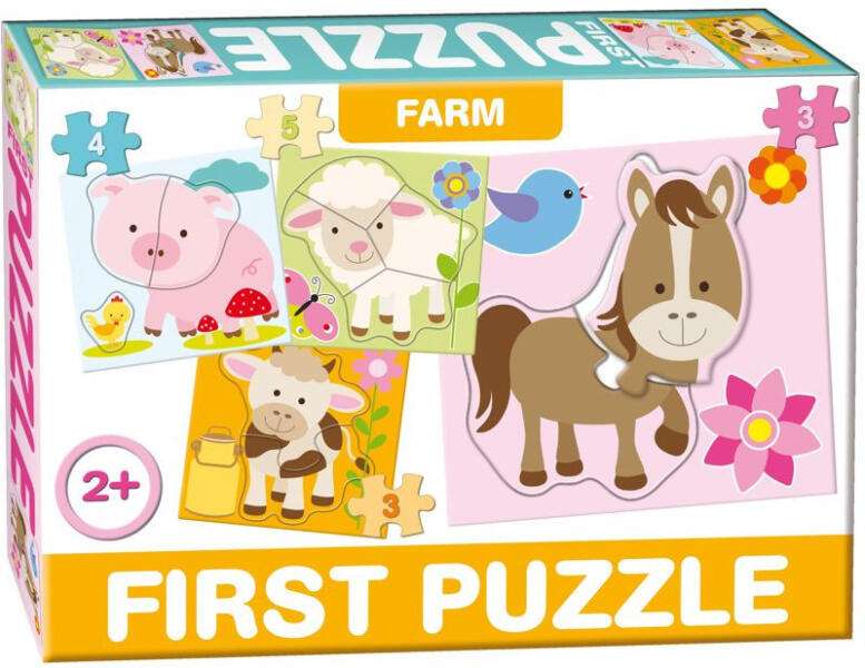 A figurák különböző elemszámból állnak. Egy 2 darabos, két 3 darabos és egy 4 darabos kirakós található a dobozban. 2 éves kortól ajánlott.