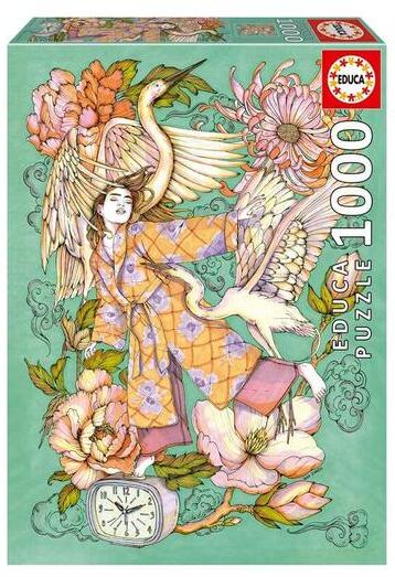 Pasztell színű álmok, virágok, madarak... így érdemes ébredni! Az Educa 1000 db-os puzzle - Ébredés (20249) című képe Ana Jarén műve alapján készült.