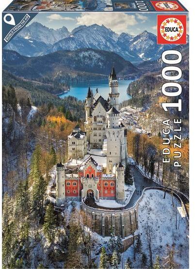 Az Educa garantálja a prémium minőséget és minden 500, 1000, 1500 és 2000 darabos puzzle terméke mellé Puzzle-fix ragasztót ad ajándékba, mellyel az elkészült kép rögzíthető. Educa - 1000 db-os puzzle - Neuschwanstein kastély a kirakott képen az egyik legismertebb kastély Európa-szerte. A világhírű építmény  Németország  egyik  leglátogatott abb  turista látványossága.