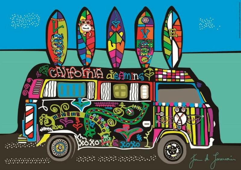Az Educa garantálja a prémium minőséget és minden 500, 1000, 1500 és 2000 darabos puzzle terméke mellé Puzzle-fix ragasztó t ad ajándékba, mellyel az elkészült kép rögzíthető. Az Educa 500 db-os puzzle - Kaliforniai álom  című képén Juan de Lascurain művész színes alkotása jelenik meg egy kisteherautóval és szörfdeszkákkal.