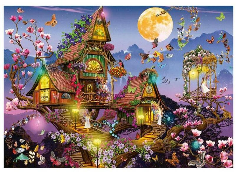 A tündérek előbújtak cuki kis házaikból, hogy együtt élvezzék ezt a csodás éjszakát az éjjeli lepkék hadával. Kalandozz te is ebben a mesebeli birodalomban az Educa 500 db-os puzzle - Tündér-lak (19554) kirakóval!