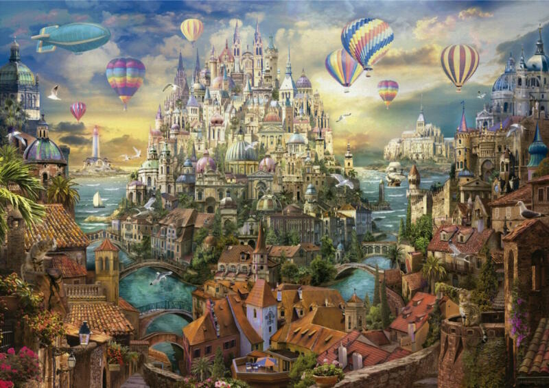 Az Educa garantálja a prémium minőséget, emellett a gyártó egyedülálló szolgáltatást is nyújt kedves vásárlóinak. Ha elveszett vagy megrongálódott a puzzle egy-egy darabja nem kell aggódnia! Írja meg a gyártónak a hiányzó darab pontos helyét (pozícióját), és az Educa ingyenesen elpostázza Önnek. A szolgáltatás minden 3000 és annál nagyobb darabszámú kirakónál vehető igénybe!Az  Educa 8000 db-os puzzle - Álmok városa című képen egy csodálatos fantáziavilág jelenik meg.