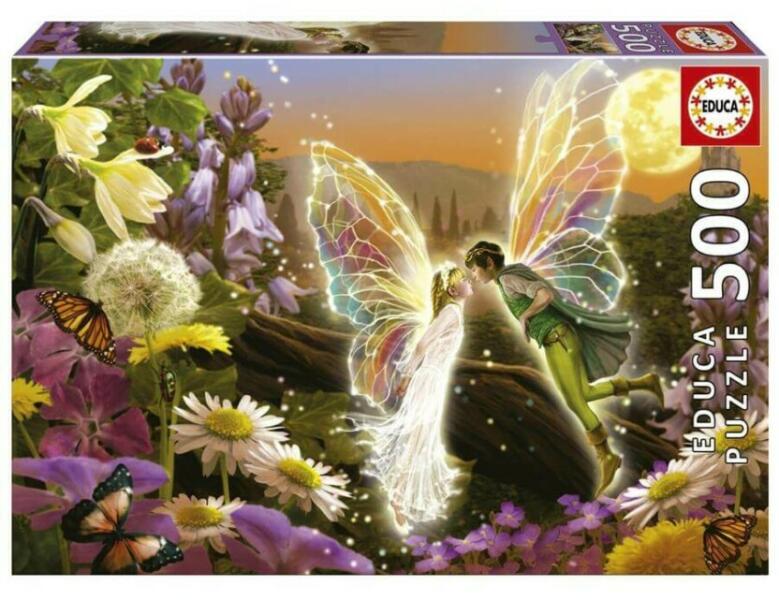 Az  Educa  garantálja a prémium minőséget, emellett  a gyártó egyedülálló szolgáltatást is nyújt kedves vásárlóinak. Ha elveszett vagy megrongálódott a puzzle egy-egy darabja nem kell aggódnia! Írja meg a gyártónak a hiányzó darab pontos helyét (pozícióját), és az Educa ingyenesen elpostázza Önnek. Nem lesz hiányos egyetlen puzzle sem, ha az Educa puzzle-t választja!Ez az  Educa 500 db-os puzzle - A csók kiarkó képén 2 tündér látható egy varázslatos környezetben.