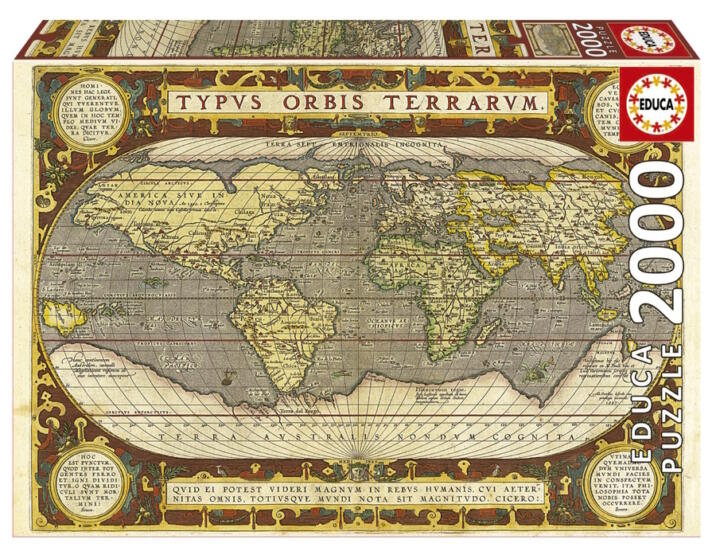Az Educa garantálja a prémium minőséget, emellett a gyártó egyedülálló szolgáltatást is nyújt kedves vásárlóinak. Ha elveszett vagy megrongálódott a puzzle egy-egy darabja nem kell aggódnia! Írja meg a gyártónak a hiányzó darab pontos helyét (pozícióját), és az Educa ingyenesen elpostázza Önnek. Az Educa 2000 db-os puzzle - Világtérkép  című képen a egy régi, igen részletes térkép látható.