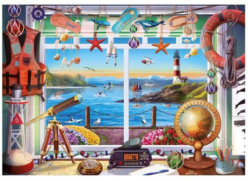 Napsütés és tenger, mi kell még a boldogsághoz? Az Educa 1000 db-os puzzle - Élet az öbölben (20256) kirakó képén egy élettel teli öbölre nyílik kilátás az ablakunkból.