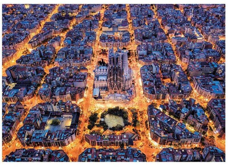 Vessz el a város éjszakai forgatagában az Educa 1500 db-os puzzle - Barcelona (20285) kirakóval! Középen a Sagrada Família, és esti fényekkel kivilágított utcák, ameddig a szem ellát.