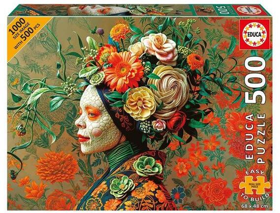 Élénk színek és buja virágok keltik életre az Educa 500 db-os XXL puzzle - A gyíkok királynője (20232) című képét. Különleges, kicsit talán meghökkentő, de mindenképp lenyűgöző alkotás.