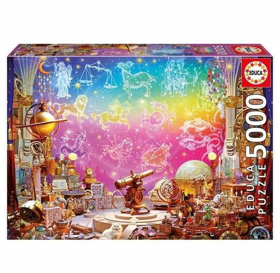 Fedezd fel a csillagképek mesés univerzumát az Educa 5000 db-os puzzle - Asztrológia (20260) kirakóval! Földgömbök, távcsövek és mindenféle izgalmas szerkezet lesz a segítségedre, hogy nyugodtan kalandozhass távoli világokba.