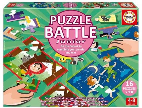 Az Educa Puzzle párbaj Junior társasjáték - Mesék (20117) összesen 16 db egyenként 9 db-os kirakót tartalmaz. Tökéletes választás a kisebb korosztály számára.