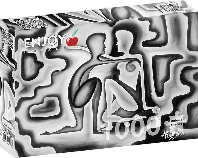 Az új technológiának köszönhetően az Enjoy Puzzle termékeknél ne aggódjon amiatt, hogy az összerakott részek szétesnek, amikor mozgatja őket, mivel a darabok szorosan és egyenletesen kapcsolódnak egymáshoz. Az aprócska puzzle darabokat bevonó sima, matt, tükröződésmentes felület minden zavaró árnyékot és oda nem illő fénylést eltűntet. Bármilyen fényviszonyok között, nappal és éjszaka is kirakható! A változatos formájú és könnyen észrevehető sajátosságok miatt a darabokat lehetetlen összetéveszteni. Enjoy 1000 db-os puzzle - Adam and Eve (1850) a kirakott képén egy absztrakt feldolgozásban látható egy jelenet, a Teremtés történetéből. Egy romantikus szerelmi jelenet tárul a puzzle kirakója elé.