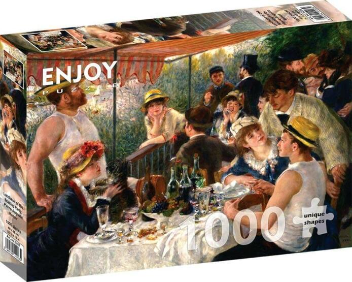 Az új technológiának köszönhetően az Enjoy Puzzle termékeknél ne aggódjon amiatt, hogy az összerakott részek szétesnek, amikor mozgatja őket, mivel a darabok szorosan és egyenletesen kapcsolódnak egymáshoz. Az aprócska puzzle darabokat bevonó sima, matt, tükröződésmentes felület minden zavaró árnyékot és oda nem illő fénylést eltűntet. Bármilyen fényviszonyok között, nappal és éjszaka is kirakható! A változatos formájú és könnyen észrevehető sajátosságok miatt a darabokat lehetetlen összetéveszteni. Az  Enjoy 1000 db-os puzzle - Auguste Renoir: Luncheon of the Boating Party (1203) kirakó képén Auguste Renoir művész alkotása látható.