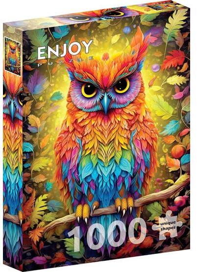 Az új technológiának köszönhetően az Enjoy Puzzle termékeknél ne aggódjon amiatt, hogy az összerakott részek szétesnek, amikor mozgatja őket, mivel a darabok szorosan és egyenletesen kapcsolódnak egymáshoz. Az aprócska puzzle darabokat bevonó sima, matt, tükröződésmentes felület minden zavaró árnyékot és oda nem illő fénylést eltűntet. Bármilyen fényviszonyok között, nappal és éjszaka is kirakható! A változatos formájú és könnyen észrevehető sajátosságok miatt a darabokat lehetetlen összetéveszteni. Enjoy 1000 db-os puzzle - Autumnal Owl (2225) a kirakott képén egy ragyogó bagoly látható, amint különleges fényló sárga színekben tündököl. Az élénk színek és a bagoly kifejező szemei lenyűgöző látványt nyújtanak a kirakóknak.