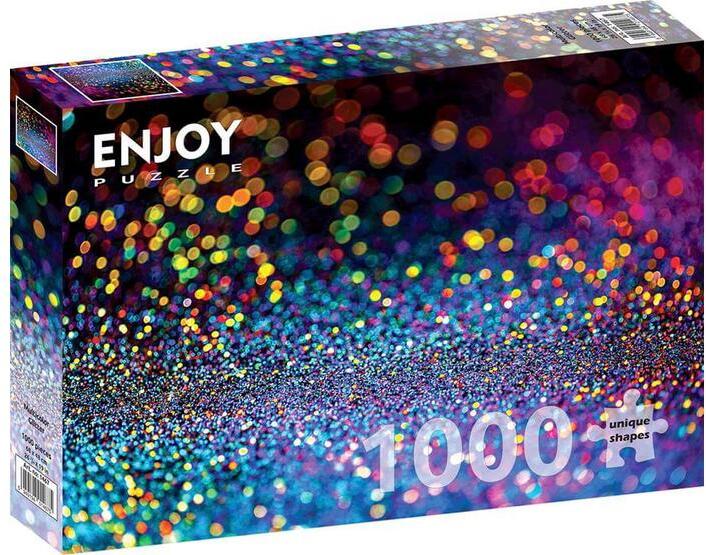 Az új technológiának köszönhetően az Enjoy Puzzle termékeknél ne aggódjon amiatt, hogy az összerakott részek szétesnek, amikor mozgatja őket, mivel a darabok szorosan és egyenletesen kapcsolódnak egymáshoz. Az aprócska puzzle darabokat bevonó sima, matt, tükröződésmentes felület minden zavaró árnyékot és oda nem illő fénylést eltűntet. Bármilyen fényviszonyok között, nappal és éjszaka is kirakható! A változatos formájú és könnyen észrevehető sajátosságok miatt a darabokat lehetetlen összetéveszteni. Az  Enjoy 1000 db-os puzzle - Multicolor Glitter (1467) kirakó képén több színből álló, csillogó glitter látható.