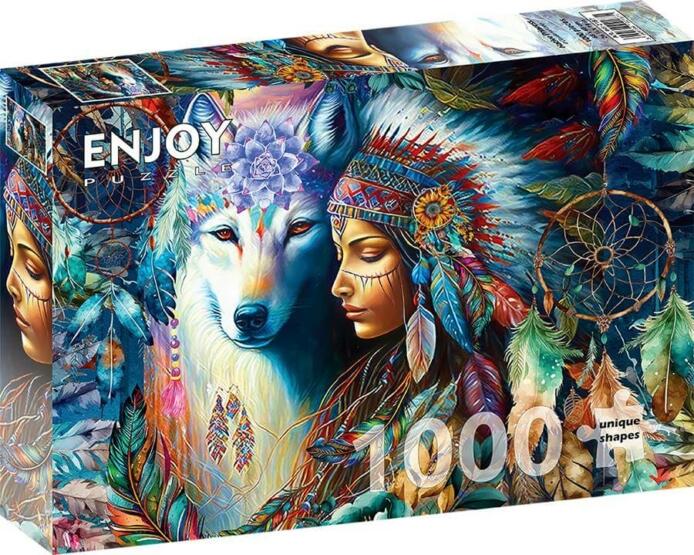 Az új technológiának köszönhetően az Enjoy Puzzle termékeknél ne aggódjon amiatt, hogy az összerakott részek szétesnek, amikor mozgatja őket, mivel a darabok szorosan és egyenletesen kapcsolódnak egymáshoz. Az aprócska puzzle darabokat bevonó sima, matt, tükröződésmentes felület minden zavaró árnyékot és oda nem illő fénylést eltűntet. Bármilyen fényviszonyok között, nappal és éjszaka is kirakható! A változatos formájú és könnyen észrevehető sajátosságok miatt a darabokat lehetetlen összetéveszteni. Enjoy 1000 db-os puzzle - Native Princess (2187) a kirakott képén egy indián hercegnőt ábrázol, aki az ősi kultúrák és legendák szimbóluma. A kép gazdag részletekkel és színekkel rendelkezik, szemünk elé tárül, hogy milyen kapcsolat van az indiánok és a természet között.