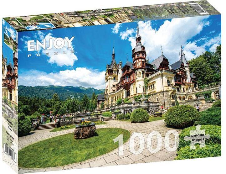 Az új technológiának köszönhetően az Enjoy Puzzle termékeknél ne aggódjon amiatt, hogy az összerakott részek szétesnek, amikor mozgatja őket, mivel a darabok szorosan és egyenletesen kapcsolódnak egymáshoz. Az aprócska puzzle darabokat bevonó sima, matt, tükröződésmentes felület minden zavaró árnyékot és oda nem illő fénylést eltűntet. Bármilyen fényviszonyok között, nappal és éjszaka is kirakható! A változatos formájú és könnyen észrevehető sajátosságok miatt a darabokat lehetetlen összetéveszteni. Az Enjoy 1000 db-os puzzle - The Royal Castle, Sinaia (1047) kirakó képén a Peleş-kastély látható, mely Romániában, Szinaja településen található. I. Károly király építette 1873 és 1914 között. A kastély neoreneszánsz stílusú és Románia egyik legfontosabb történelmi jellegű műemléke.