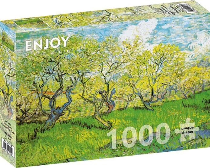 Az új technológiának köszönhetően az Enjoy Puzzle termékeknél ne aggódjon amiatt, hogy az összerakott részek szétesnek, amikor mozgatja őket, mivel a darabok szorosan és egyenletesen kapcsolódnak egymáshoz. Az aprócska puzzle darabokat bevonó sima, matt, tükröződésmentes felület minden zavaró árnyékot és oda nem illő fénylést eltűntet. Bármilyen fényviszonyok között, nappal és éjszaka is kirakható! A változatos formájú és könnyen észrevehető sajátosságok miatt a darabokat lehetetlen összetéveszteni. Az  Enjoy 1000 db-os puzzle - Vincent Van Gogh: Orchard in Blossom (1179) kirakó képén Vincent Van Gogh művész festménye látható.  A dél-franciaországi Arles városa körül sok gyümölcsöskert volt, ami a művészt inspirálta, hogy a virágba borult gyümölcsfákat megfesse.