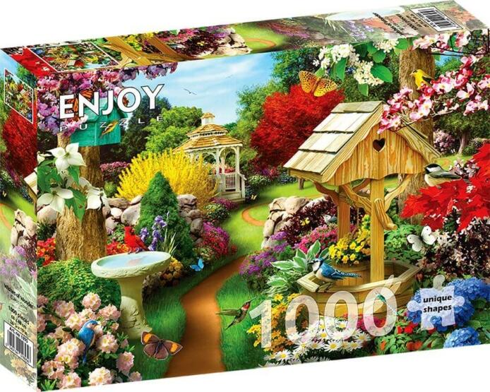 Az új technológiának köszönhetően az Enjoy Puzzle termékeknél ne aggódjon amiatt, hogy az összerakott részek szétesnek, amikor mozgatja őket, mivel a darabok szorosan és egyenletesen kapcsolódnak egymáshoz. Az aprócska puzzle darabokat bevonó sima, matt, tükröződésmentes felület minden zavaró árnyékot és oda nem illő fénylést eltűntet. Bármilyen fényviszonyok között, nappal és éjszaka is kirakható! A változatos formájú és könnyen észrevehető sajátosságok miatt a darabokat lehetetlen összetéveszteni. Enjoy 1000 db-os puzzle - Wishes of Wonder (1895) a kirakott képén egy varázslatos kép, melyen egy tündérkert látható, madáretetővel, madáritatóval és rengeteg mesebeli elemmel.