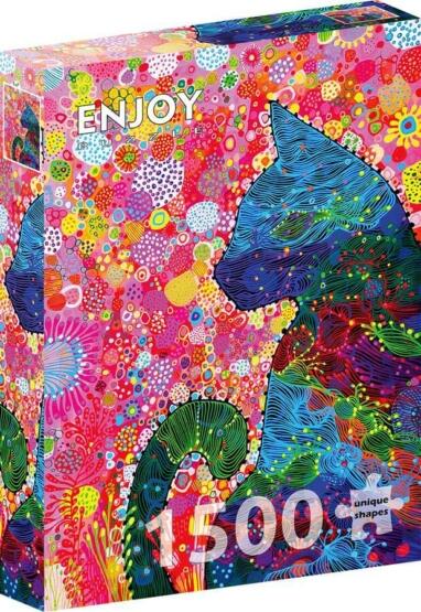 Az új technológiának köszönhetően az Enjoy Puzzle termékeknél ne aggódjon amiatt, hogy az összerakott részek szétesnek, amikor mozgatja őket, mivel a darabok szorosan és egyenletesen kapcsolódnak egymáshoz. Az aprócska puzzle darabokat bevonó sima, matt, tükröződésmentes felület minden zavaró árnyékot és oda nem illő fénylést eltűntet. Bármilyen fényviszonyok között, nappal és éjszaka is kirakható! A változatos formájú és könnyen észrevehető sajátosságok miatt a darabokat lehetetlen összetéveszteni. Enjoy 1500 db-os puzzle - Wandering Cat (2237) Az 1500 darabból álló puzzle egy macskát ábrázol, ahogy kíváncsian fedez fel egy új környezetet. A kép egy absztrakt művet formál, a macska sziluettje jelenik meg csupán.