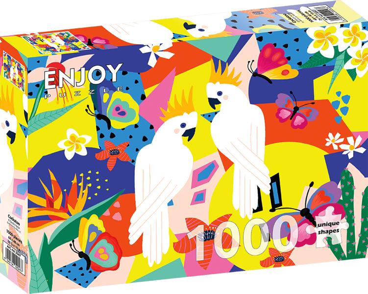 Az új technológiának köszönhetően az Enjoy Puzzle termékeknél ne aggódjon amiatt, hogy az összerakott részek szétesnek, amikor mozgatja őket, mivel a darabok szorosan és egyenletesen kapcsolódnak egymáshoz. Az aprócska puzzle darabokat bevonó sima, matt, tükröződésmentes felület minden zavaró árnyékot és oda nem illő fénylést eltűntet. Bármilyen fényviszonyok között, nappal és éjszaka is kirakható! A változatos formájú és könnyen észrevehető sajátosságok miatt a darabokat lehetetlen összetéveszteni. Enjoy 1000 db-os puzzle - Cockatoo (2047) képén két kakadu madár látható, rendkívül színes, absztrakt ábrázolásban.