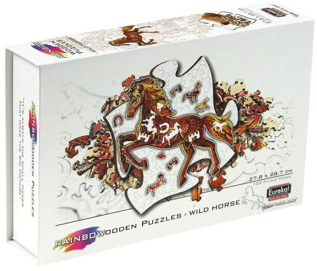 Az Eureka gyönyörű, színpompás, fából készült kirakó, különleges formáival és mesés képeivel igazi flow élményt biztosít minden korosztály számára. Az Eureka 103 db-os Rainbow Fa puzzle - Vadló (EUR34668) kirakó egy vágtázó lovat elevenít meg.