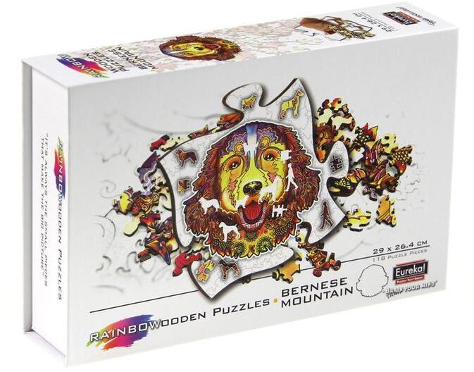 Az Eureka gyönyörű, színpompás, fából készült kirakó, különleges formáival és mesés képeivel igazi flow élményt biztosít minden korosztály számára. Az Eureka 118 db-os Rainbow Fa puzzle - Berni pásztor (EUR34666) kirakó kitűnő választás a kutyák szerelmeseinek.