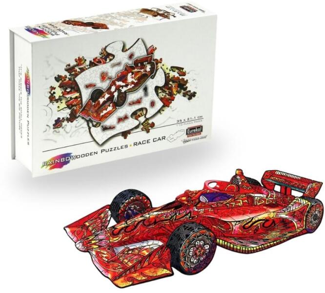 Az Eureka gyönyörű, színpompás, fából készült kirakó, különleges formáival és mesés képeivel igazi flow élményt biztosít minden korosztály számára. Az Eureka 110 db-os Rainbow Fa puzzle - Versenyautó (EUR34669) kirakó egy igazán vagány járművet ábrázol.