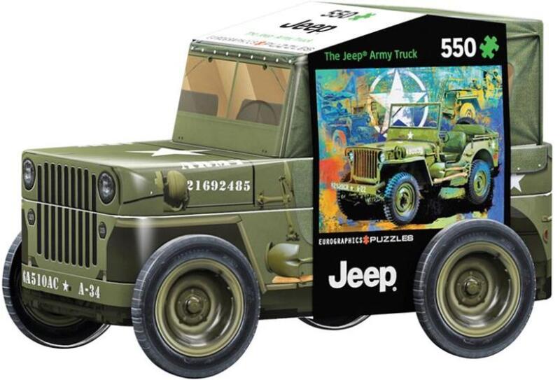 Az Eurographics 550 db-os puzzle fém dobozban - Military Jeep című képen egy vagány katonai terepjáró látható. Az 550 db-os puzzle fém dobozban tárolható, a doboz poszter képet tartalmaz. Az Eurographics gyártó nagy figyelmet fordít a környezettudatos működésre, úgy a termékeik előállításánál, mint a dolgozóik környezetbarát gondolkodásra való ösztönzésénél. Tegyünk érte, hogy ezeket a lenyűgöző helyeket megőrizzük a jövő generációi számára!Az új technológiának köszönhetően a puzzle  Smart cut vágással készült, ami izgalmasabb kirakást nyújt.