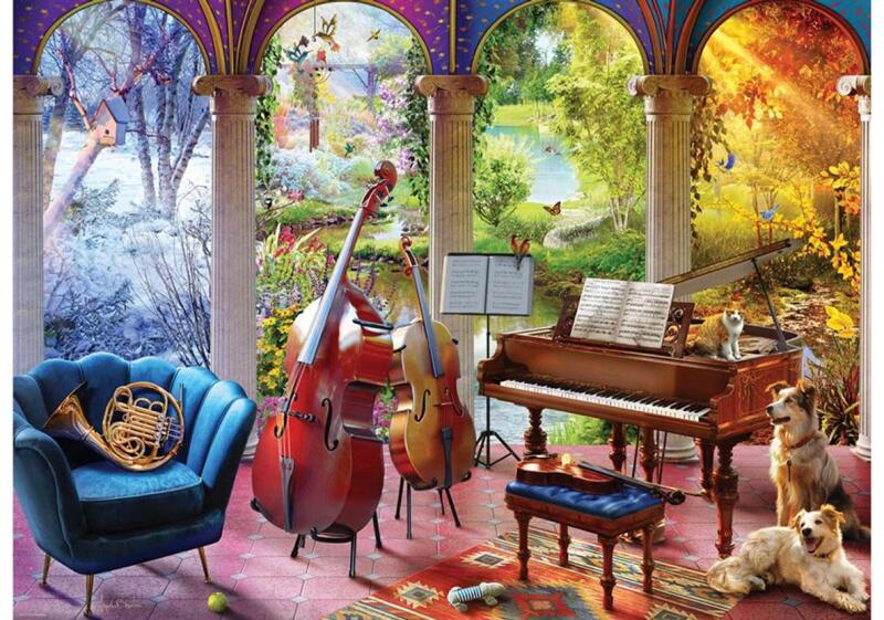 Az EuroGraphics 1000 db-os puzzle - Four Seasons  Angelo Bonito műve. A képen hangszereket láthatunk egy hangulatos szobában, ahol az ablakon kitekintve a négy évszak váltakozását kísérhetjük figyelemmel.